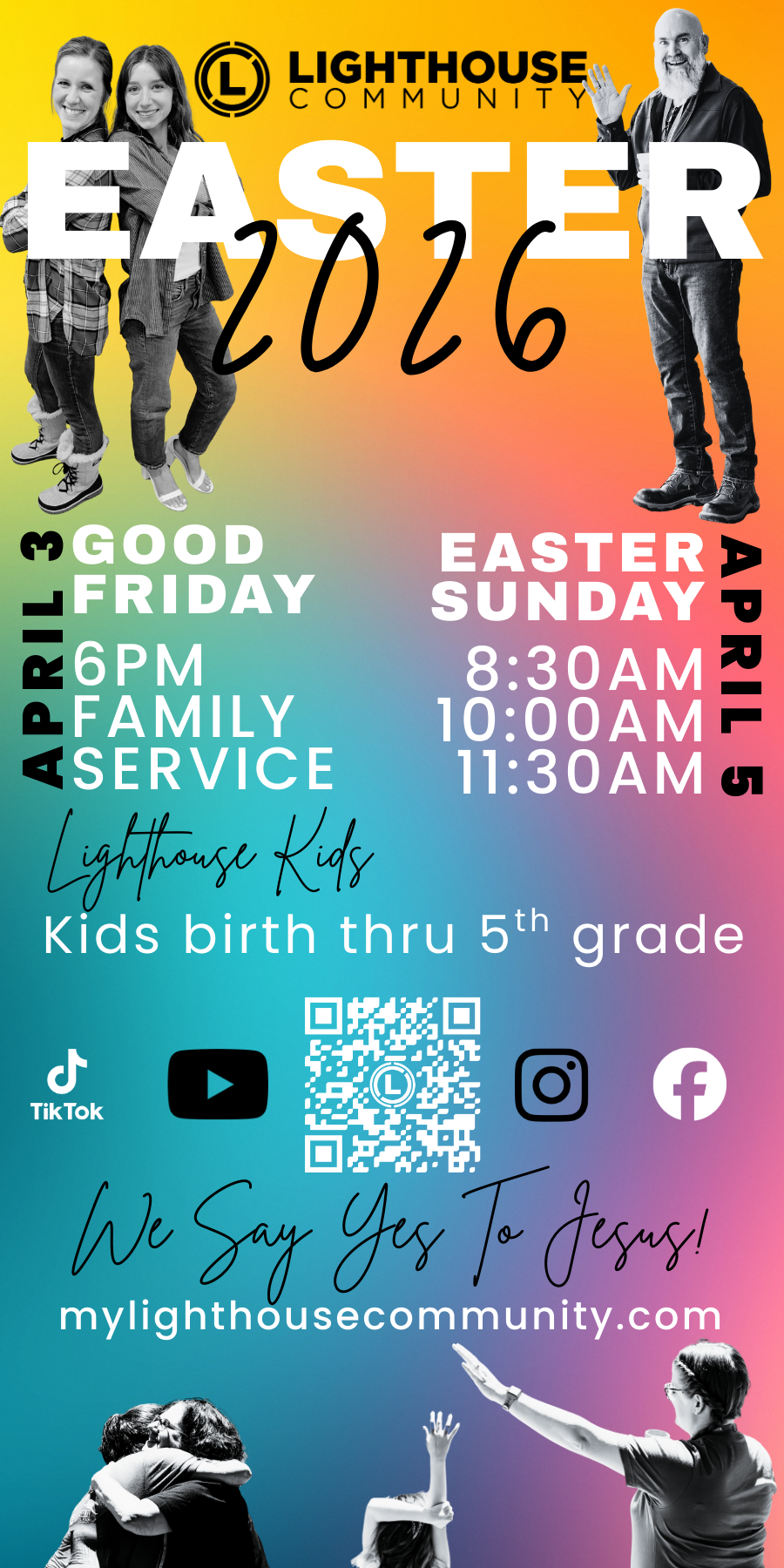 There are three services on Easter Sunday for you to choose from. Pick the service that fits your needs the best! All three services are the same and Lighthouse Kids will be available.